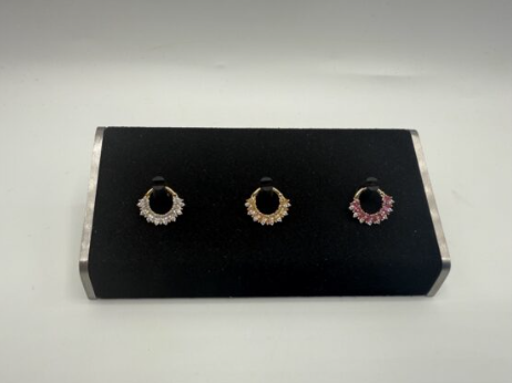 ¡El Clap! Elite 3 Clip Display es una gran opción para piercers profesionales o estudios de tatuaje que quieran exponer joyas corporales de forma bonita y rápida. Están diseñados para ser resistentes y fáciles de usar, son compactos (12 cm x 5 cm x 4 cm) e incluyen tres clips de silicona de calidad, disponibles en blanco y negro. La silicona es lo suficientemente fuerte como para sujetar bien las joyas, lo que significa que las piezas permanecen en su sitio, y es ideal para exponer barbells, narigueras, clickers y los demás estilos populares de joyas utilizadas para piercings de una manera profesional.
