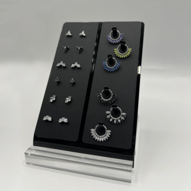 Êtes-vous frustré par l'encombrement de votre comptoir ? La réponse est ce présentoir vertical qui est la base du système Clap ! Vous voulez placer vos couvercles de présentation Clap ! directement sur le dessus de la base. Vous pouvez empiler les couvercles sur deux hauteurs. Cela vous permet de présenter encore plus de bijoux sans utiliser plus d'espace sur le comptoir. C'est une façon intelligente de présenter vos extrémités et bagues les plus vendues. Créez une présentation impressionnante pour vos clients avec un look frais, propre et moderne qui permet à vos clients de tout voir clairement.