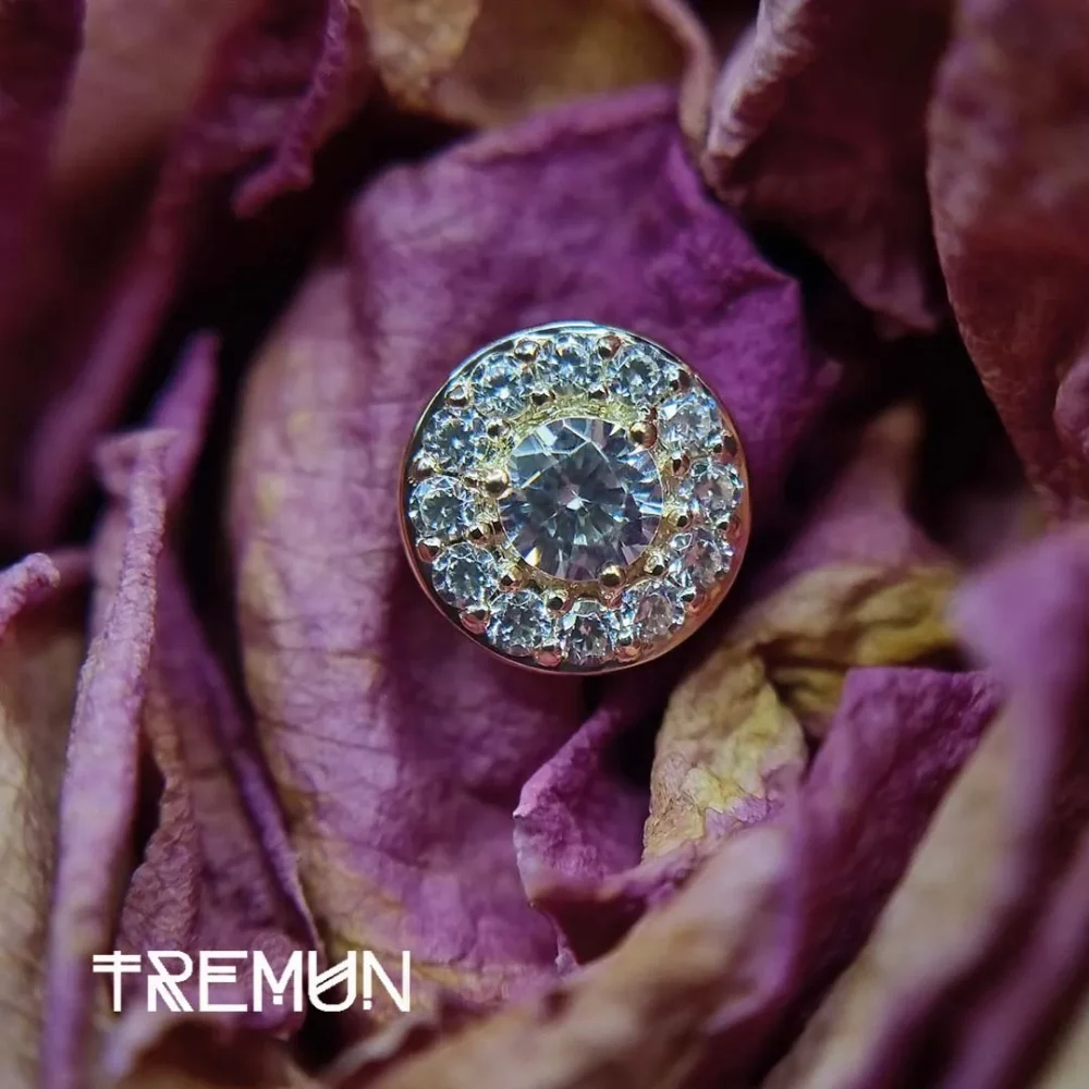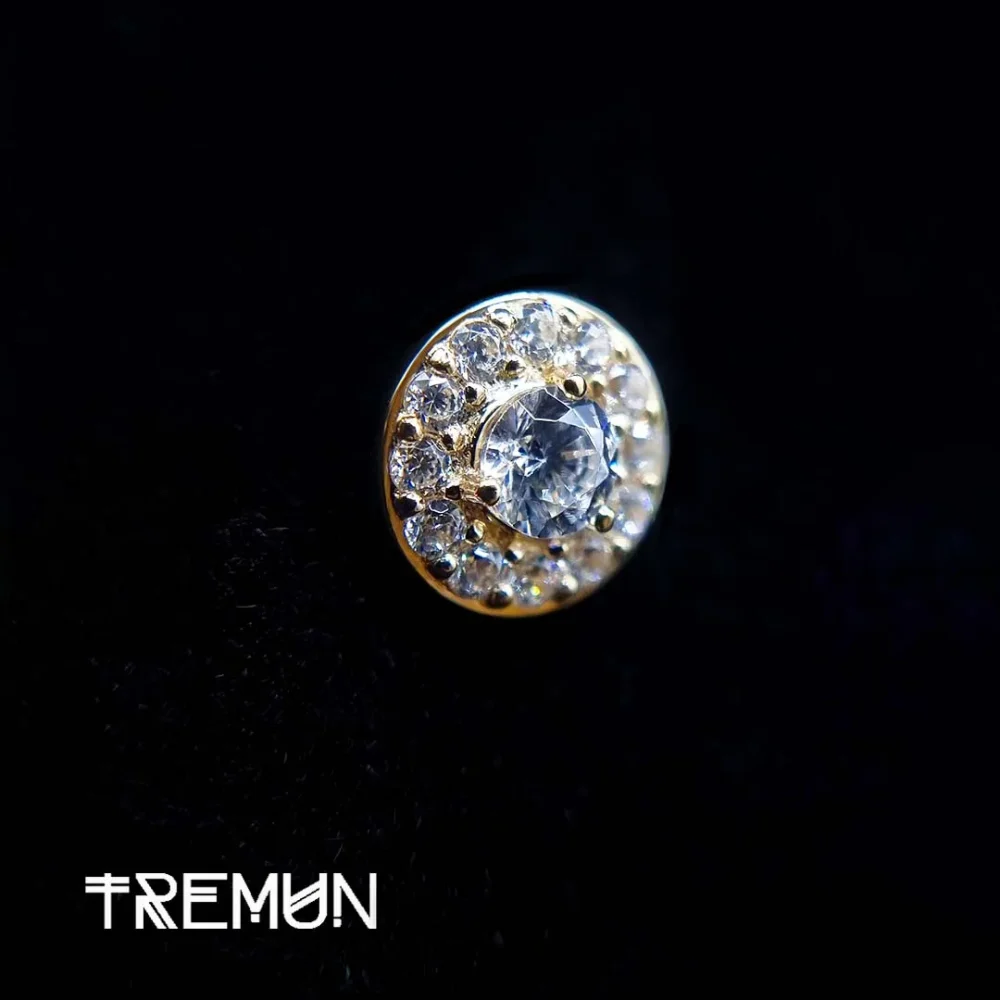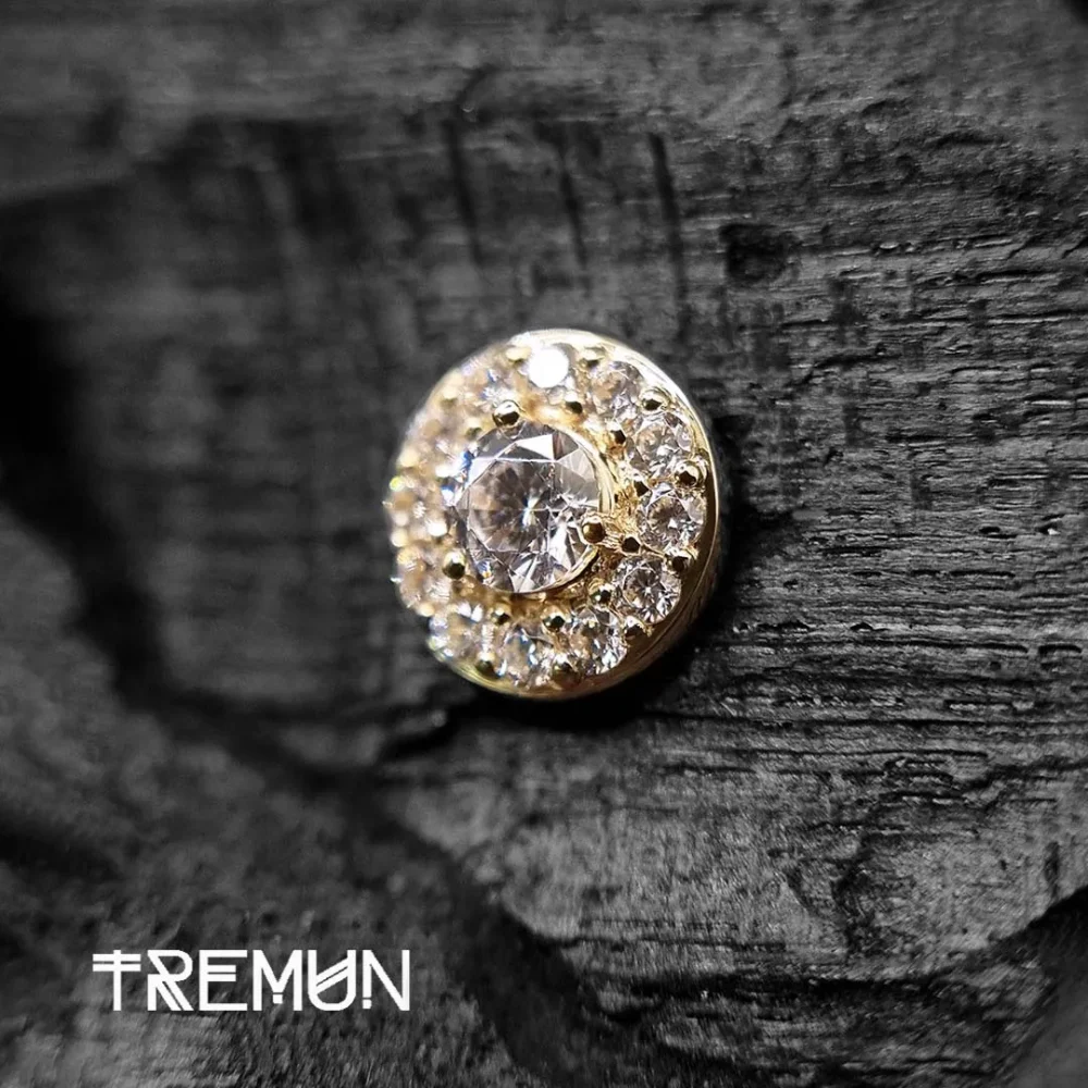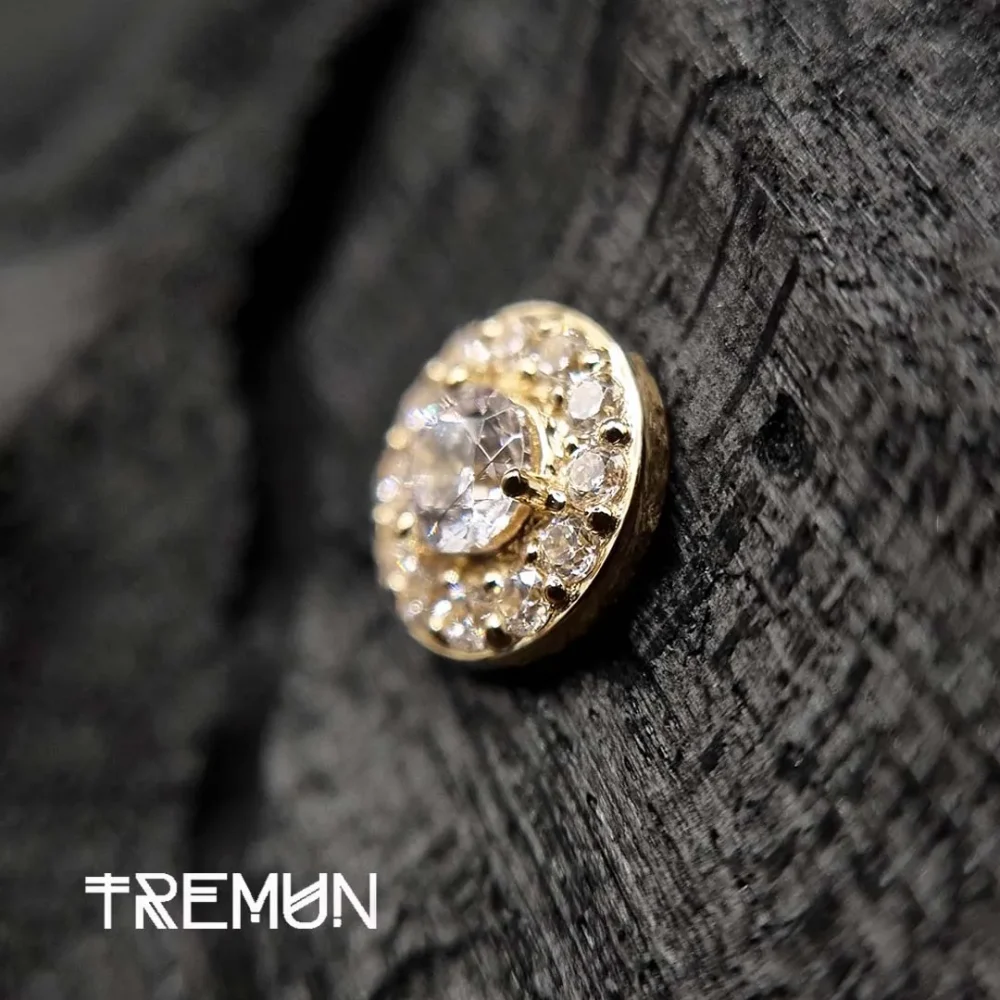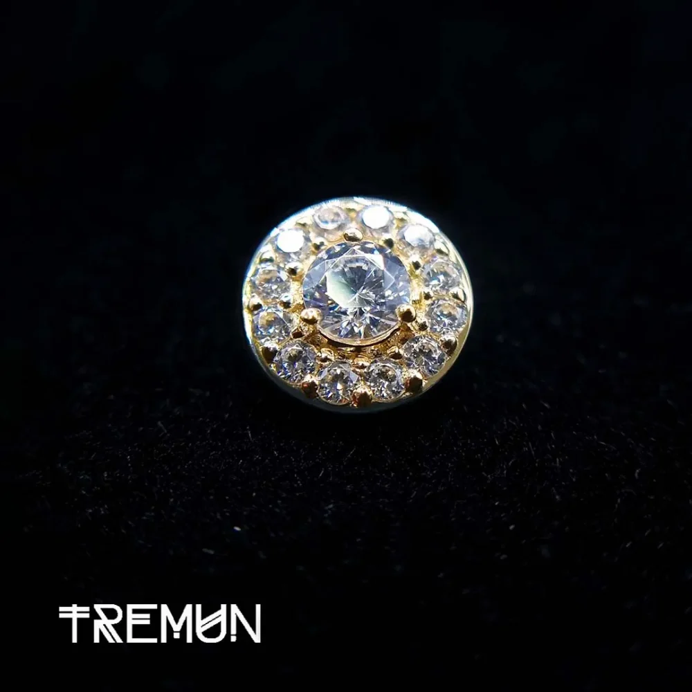 Kathy naušnica s unutarnjim navojem vrhunska je nadogradnja za one koji se profesionalno bave piercingom. Izrađena od čistog 14-karatnog žutog zlata, ova naušnica izvrsna je kombinacija luksuza i sigurnosti. 14G i veličine 7 mm, ova naušnica ukrašena je kubnim cirkonom koji će oduševiti svakoga. S unutarnjim navojem za lakše umetanje i bolju sigurnost, ova naušnica dizajnirana je za zaštitu osjetljivog tkiva tijekom umetanja. Izrađena od hipoalergenih materijala i otporna na tamnjenje, ova naušnica je izdržljiva i dugo će izgledati sjajno, a istovremeno će ostati udobna. Ova naušnica idealna je za piercing labreta, tragusa ili hrskavice. Dodajte Kathy naušnicu u svoju kolekciju nakita za tijelo kako biste svojim klijentima ponudili luksuzan i siguran nakit za tijelo.