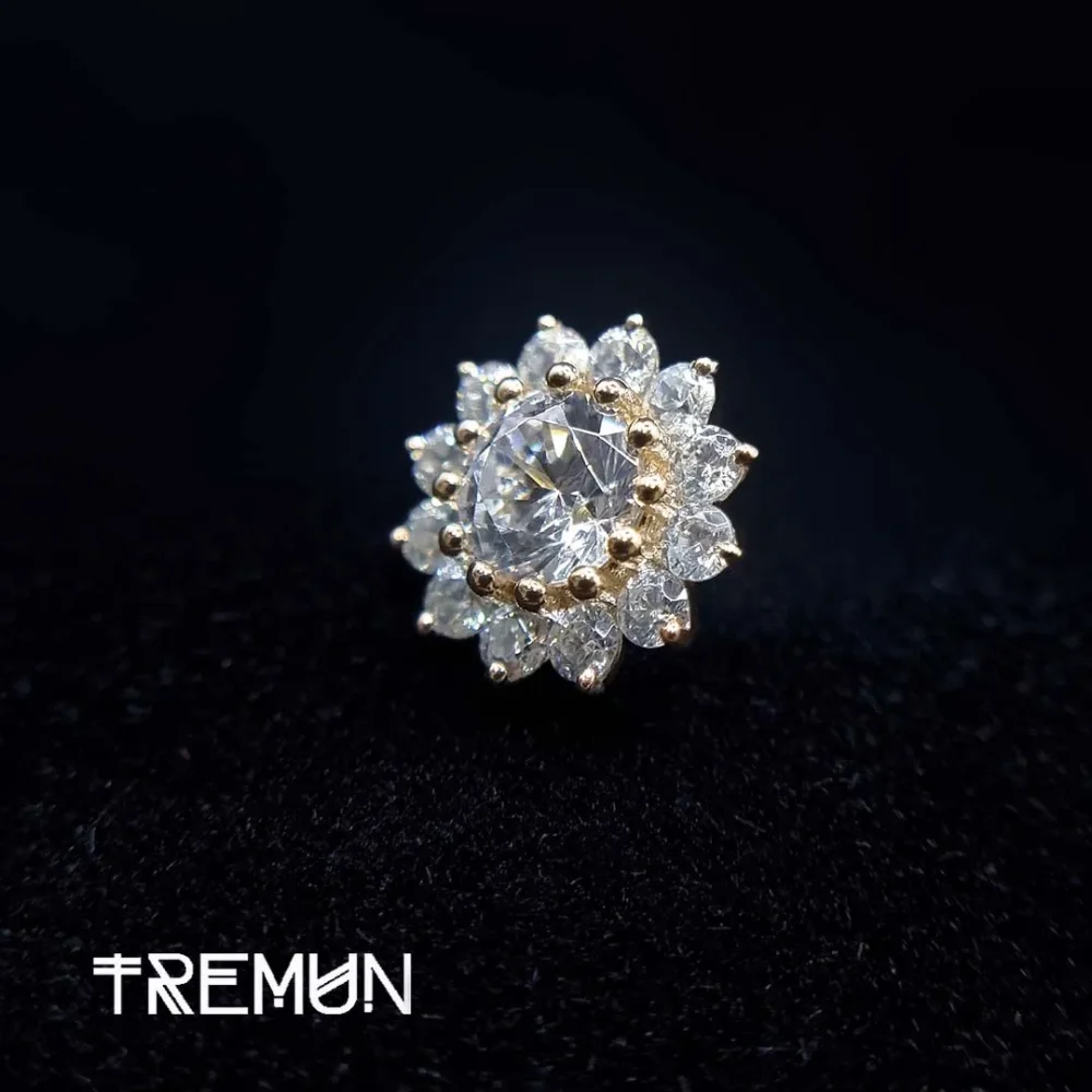 Concedetevi un fascino sobrio con il terminale senza fili Viridea, un delicato e intricato disegno floreale. Realizzato in oro giallo 14 carati, questo terminale presenta molteplici petali che circondano una CZ Swarovski centrale che brilla, aggiungendo realismo e raffinatezza al design del fiore.