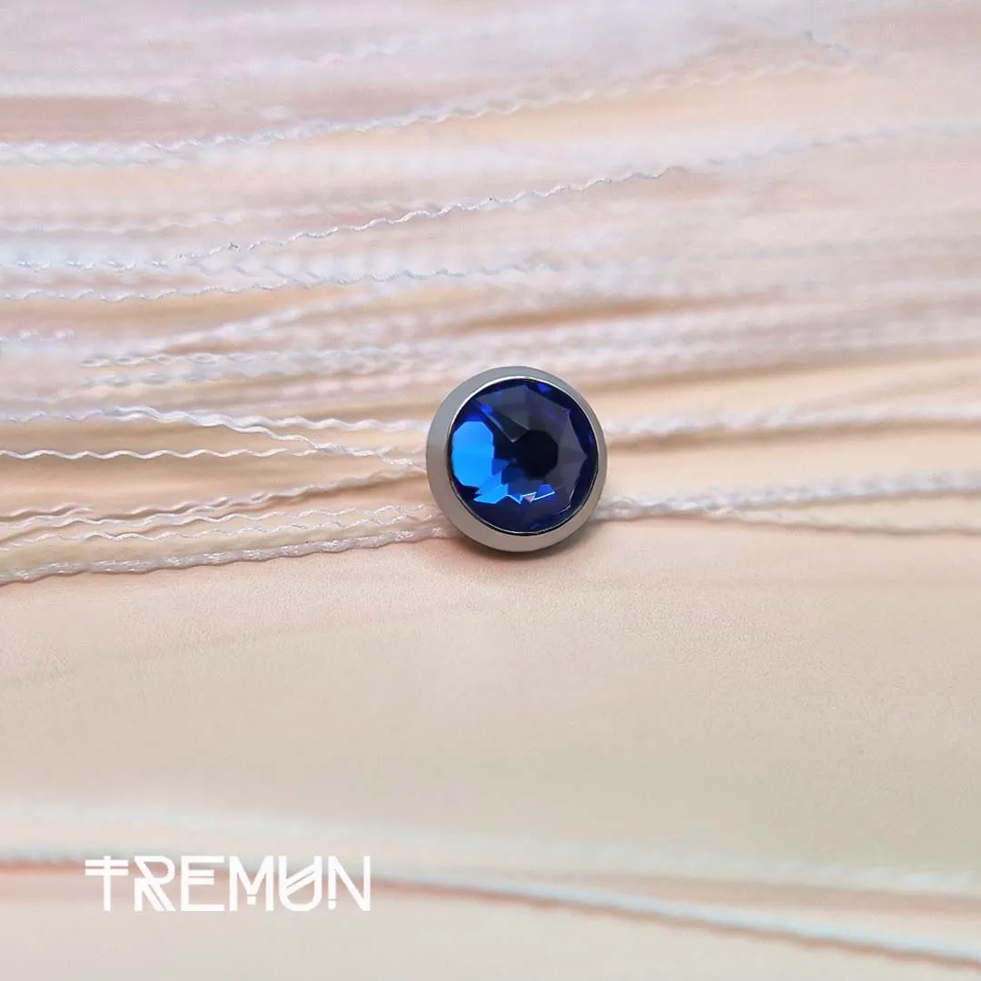 Dermal Top – SW Crystal Sapphire is a professional dermal accessory, used around the globe by piercing professionals. It is made from Implant Grade Titanium F-136, ensuring safety and durability, and happens to be a titanium stud with internal (female) threading, ensuring a smooth surface application and secure fit. The Dermal Top can also be applied to multiple dermal placements; it is available in 2.5 mm, 3 mm, 4 mm, and 5 mm diameters and 16G and 14G gauges (so there are options for all your different locations). The rich blue Sapphire SW crystal/stone decor really pops and provides an upscale approach and is a darling of clients who just want to stand out in the way of body jewelry.