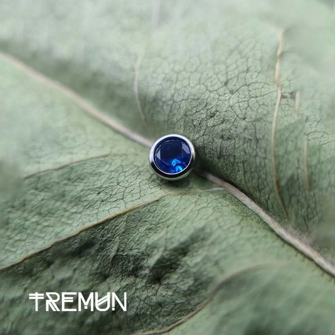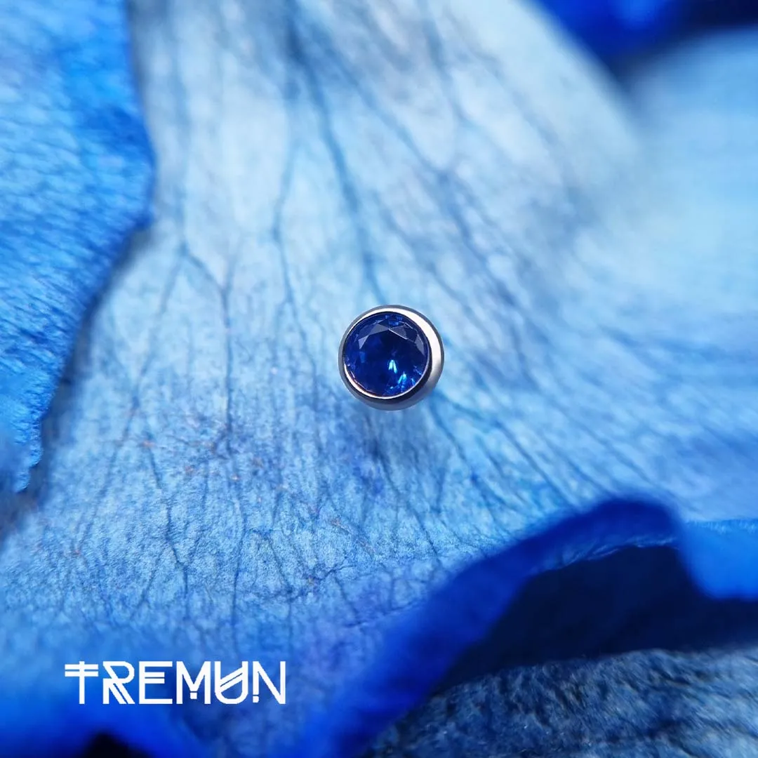 The Lilbit Push Pin Sapphire Blue can only be worn with 25-gauge push pin labrets and are available in 1.5 mm, 2 mm, 2.5 mm, or 3 mm in diameter, accommodating a variety of placements. The piece highlights a stunning, bright, and sparkling sapphire blue cubic zirconia gemstone, allowing for a colorful, bold sparkle for all cartilage, lobe, or nose piercings.