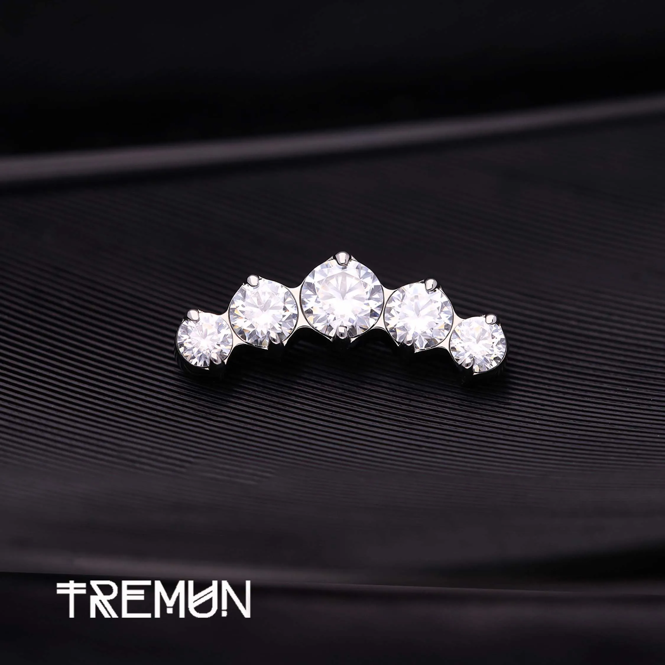 The Prong Cluster Moissanite White brings elegance and durability together! It is made of implant-grade titanium F-136. You’ll love the three shining moissanite gems measuring: 4mm, 3mm, and 2mm respectively. The internal threading makes this cluster safe, hypoallergenic, and for professional use only (in a piercing studio). An excellent choice for retailers and suppliers who want to offer high-quality body jewelry to their customers!