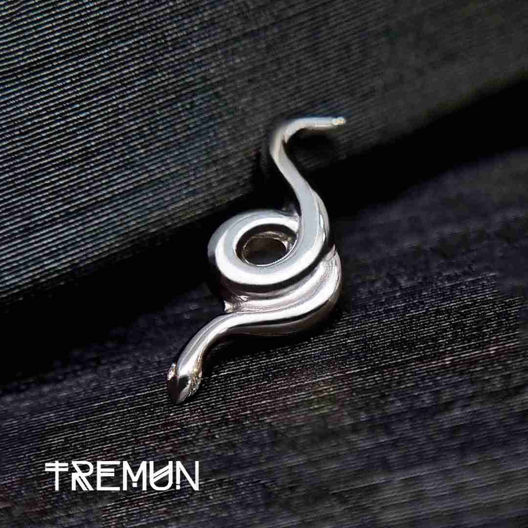 The Snake titanium stud with internal threading, a sophisticated design, is a sculptural construction made from implant-grade titanium F-136 that provides biocompatibility and durability. The snake’s undulating form gives it a slight twist, making it at once understated and impactful. As a 16G gauge, it’s perfect for more delicate types of piercings, such as nostril, helix, daith, or cartilage, that could utilize the elegance of that shape.