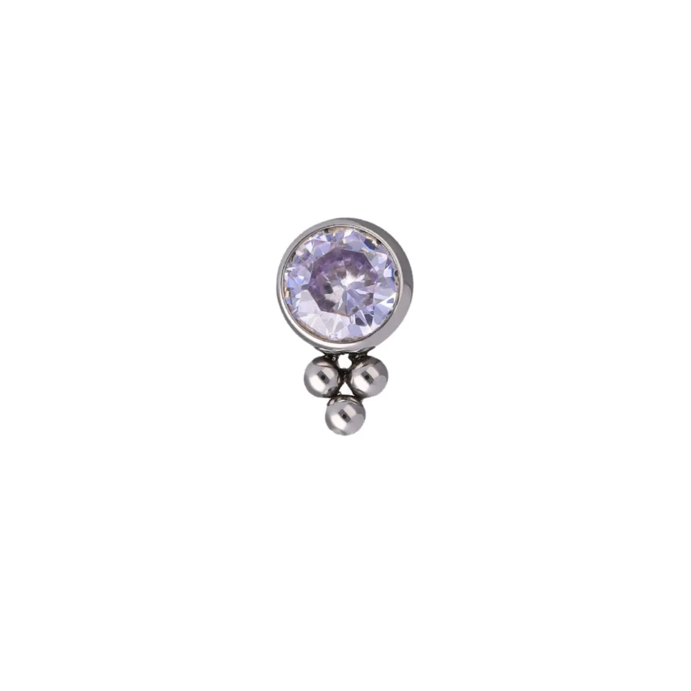 The Venus Lavender is a high-quality option for piercing professionals looking for safe, stylish, and durable jewelry. Made from implant-grade Titanium F-136, it has an internally threaded design, offering maximum safety and comfort for each client. The 16G gauge and 4mm cubic zirconia stone (with a soft lavender color) are exceptional for ear, lip, and cartilage piercings.